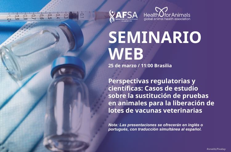 Join us for a new webinar in the AFSA–HealthforAnimals veterinary vaccines series, this time focused on Latin America. Building on our October 2024 global webinar, this session will highlight key global initiatives to transition to non-animal methods s for veterinary vaccine batch-release testing and explore how these can be adopted in LATAM countries.